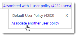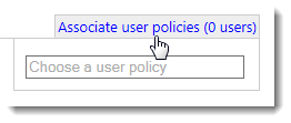 - Select the user policy you want to associate. The Associate user policies link changes to Associated with 1 user policy and displays the total number of users contained within the associated user policy.