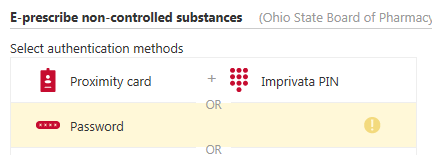 ‡ Neither Imprivata ID nor network password as a single factor are allowed by the Ohio State Board of Pharmacy for certain workflows. You are prompted when necessary to delete these authentication methods before saving the workflow policy.