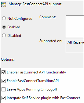 Additional Citrix configuration is required to support the Citrix FastConnect API.