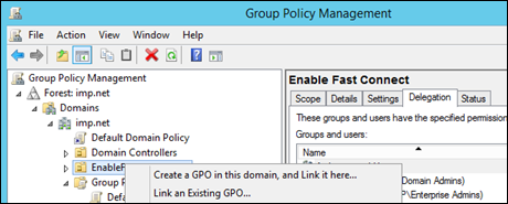 Create A Group Policy to Manage Fast Connect Configuration