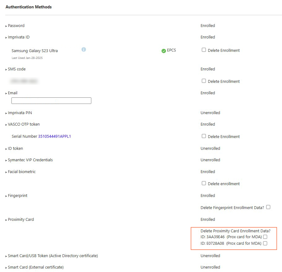 Each user's proximity card must be enrolled before it can be used to authenticate to Enterprise Access Management. The enrollment process maps the card number to the user’s user ID.
