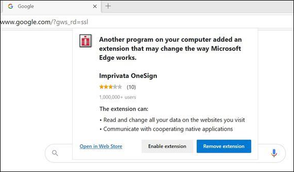 • The Imprivata agent installer installs, but does not enable, an Imprivata SSO extension from the Chrome Web store.