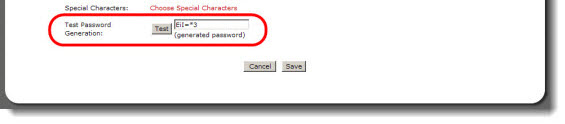- Click Test to test password generation. Imprivata Enterprise Access Management generates a sample password according to the policy you have generated.