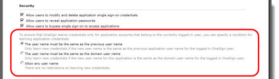 If the application user name is the same as the user’s domain name for all users, then select The user name must be the same as the domain user name.