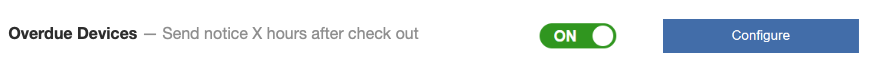 Navigate to Admin > Check Out and turn on the Overdue Devices setting. Click Configure.