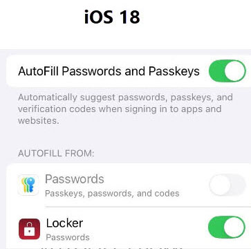 In iOS 18, ensure that the Passwords setting is not toggled on.
