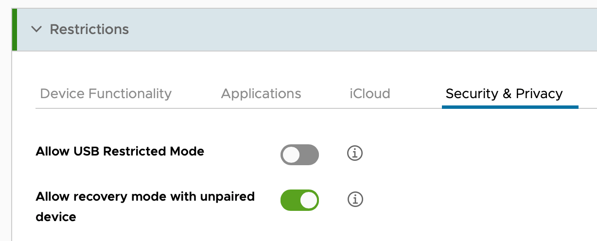 This feature requires allowing force recovery via an MDM restrictions profile. If this option or checkbox is not available in the restrictions profile in your MDM, it may be possible to enable via custom XML.
