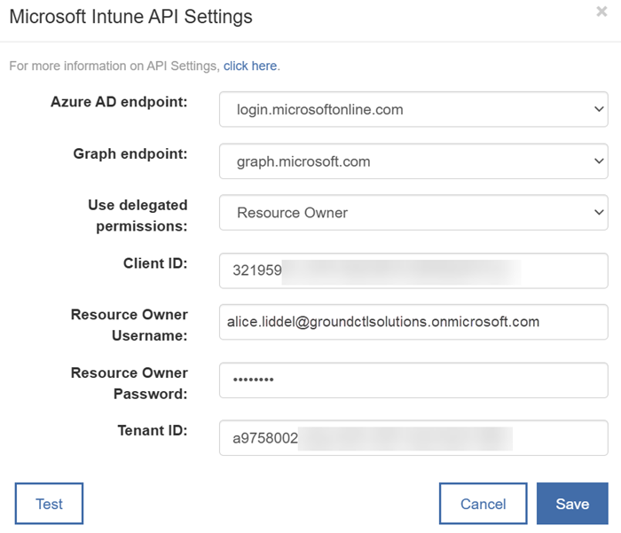 If you selected Resource Owner as the authentication method for delegated permissions, type the Resource Owner Username and Resource Owner Password.