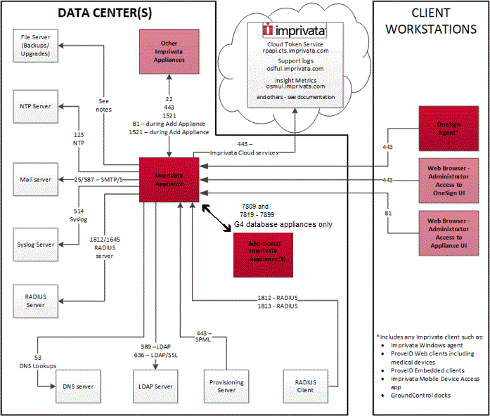 Imprivata uses a variety of TCP and UDP ports in its communications. The following describes the use of these ports to enable firewall administrators to configure rules that will allow these communications to take place.