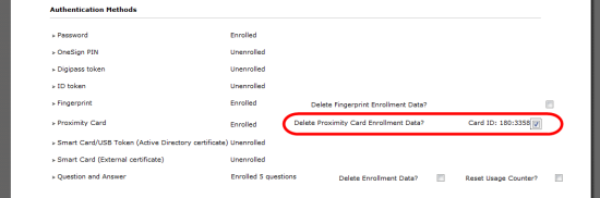 Alternatively, set up a single computer dedicated to proximity card enrollment. A computer policy for this endpoint that allows password-only authentication overrides your user policy that requires two-factor authentication.