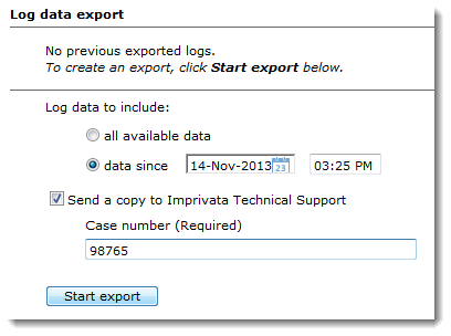 1. In the Imprivata Appliance Console, go to System > Logs > Log data export > Log data to include
