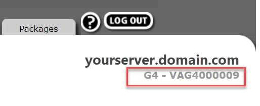 The number to the right is the appliance serial number. Serial numbers begin with VAG4 for fourth generation virtual appliances and VAG3 for third generation virtual appliances.