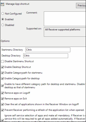 BEST PRACTICE: Use Citrix StoreFront categories in the Start menu instead.