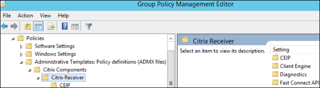 Go to Computer Configuration > Policies > Administrative Templates Policy Definitions (ADMX files) retrieved from the central store > Citrix Components > Citrix Workspace app.
