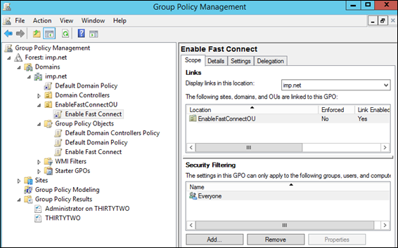Create A Group Policy to Manage Fast Connect Configuration