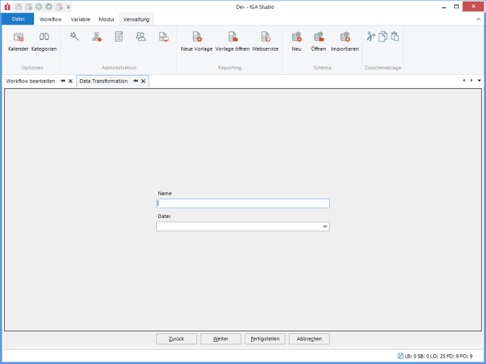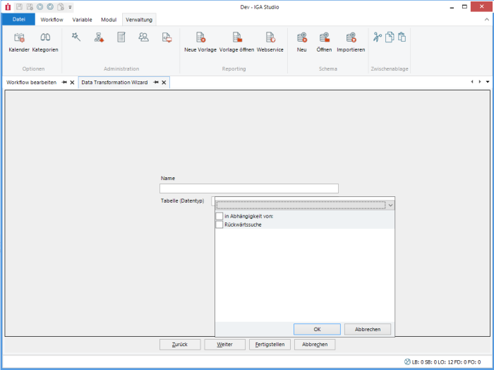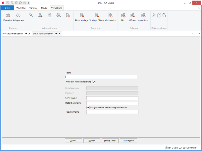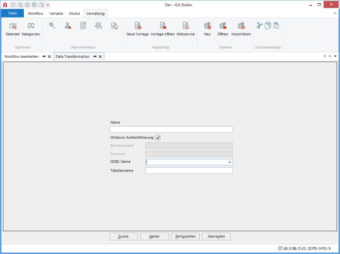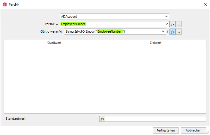 Each column can contain a validity check. Columns without a check are always valid. If the field or the FX result is empty, the default value is used. This can also be a calculated value, e.g. the current date or a GUID.