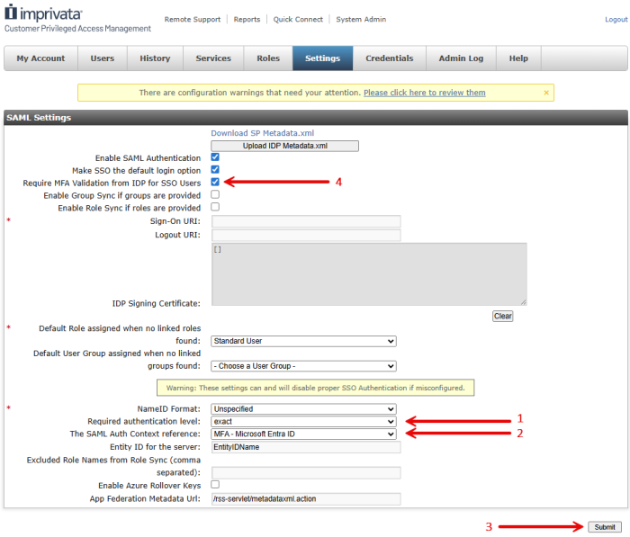 For CPAM customers using the Nexus to connect to VPAM applications, improper configuration of SAML Settings could result in locking users out completely. To minimize potential downtime, Imprivata recommends the following: